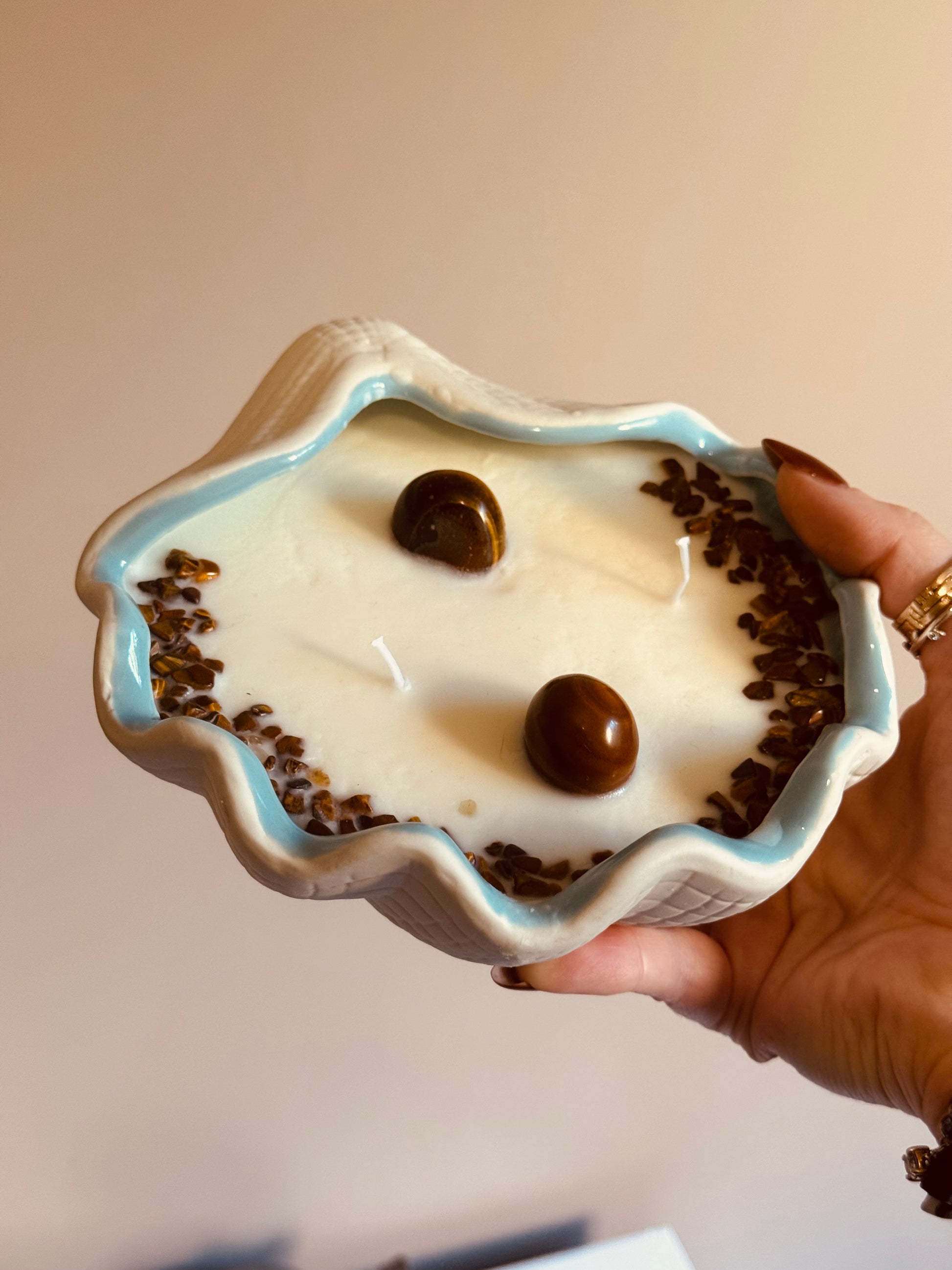 Bougie grand coquillage - myrtille/cassis - Œil de Tigre