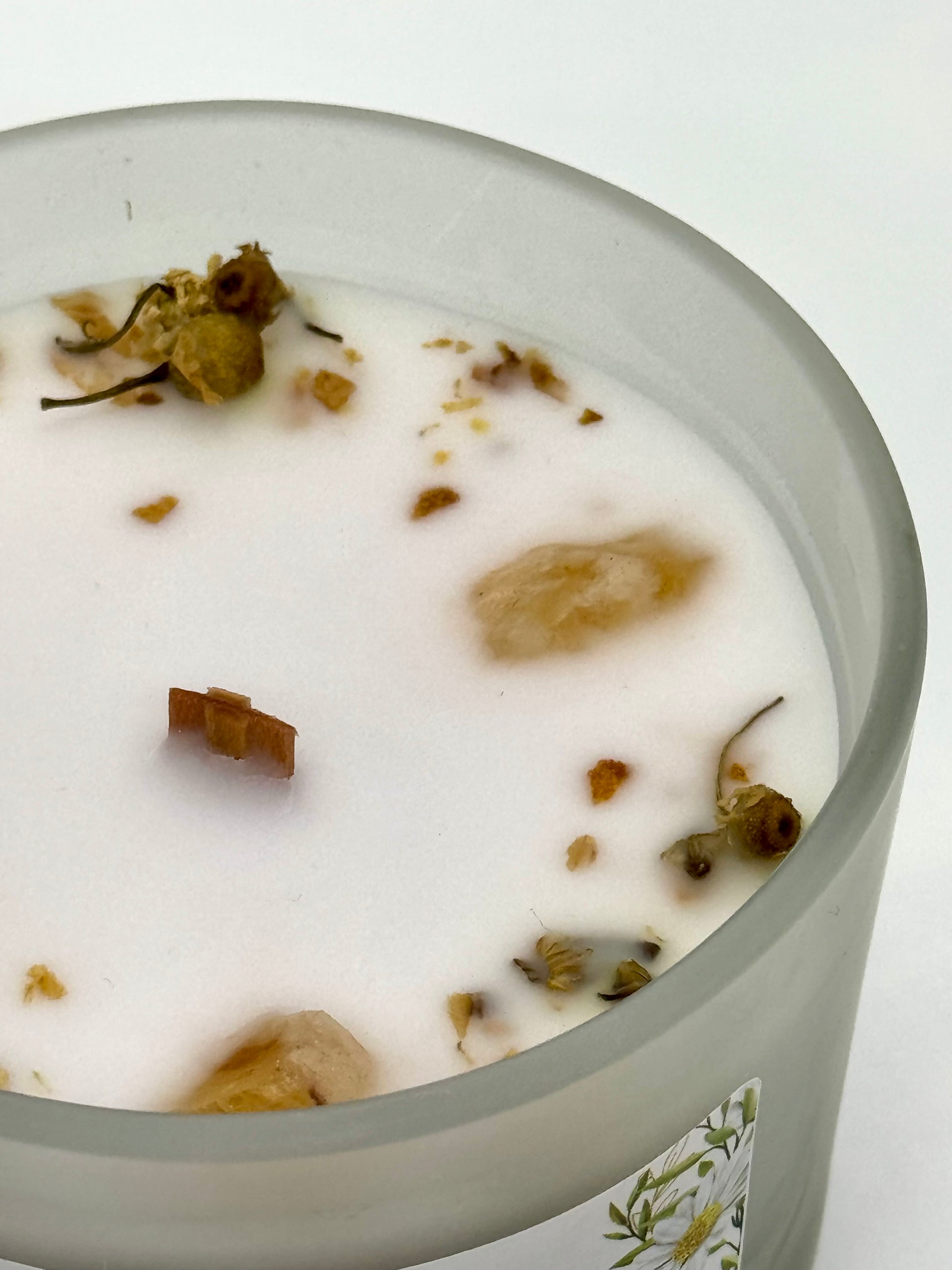 Bougie fabriquée à la main en Inde incrustée de minéraux et fleurs séchées 🌸