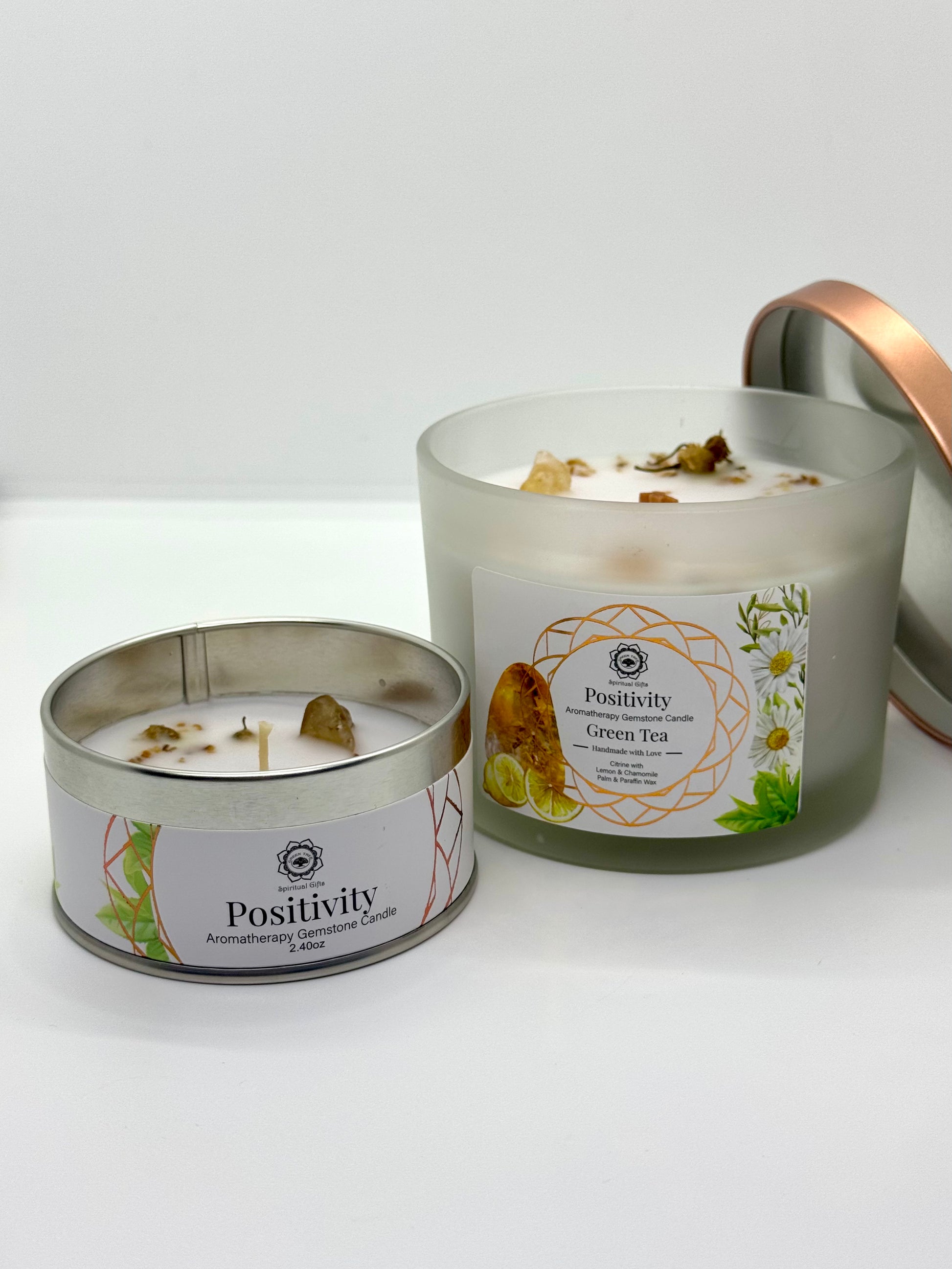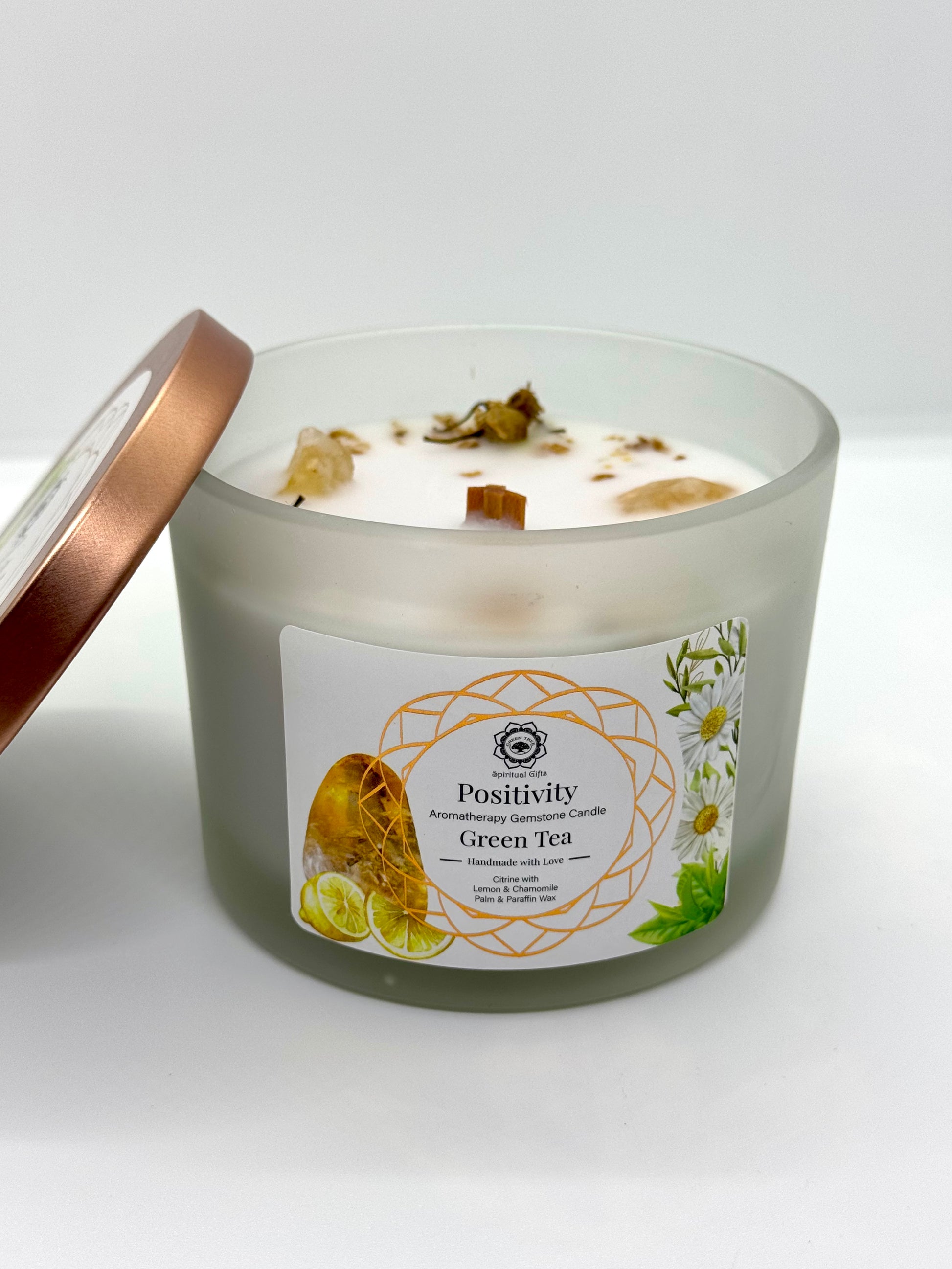 Bougie Green Tree "Positivité" Citrine + Thé vert - Grand format