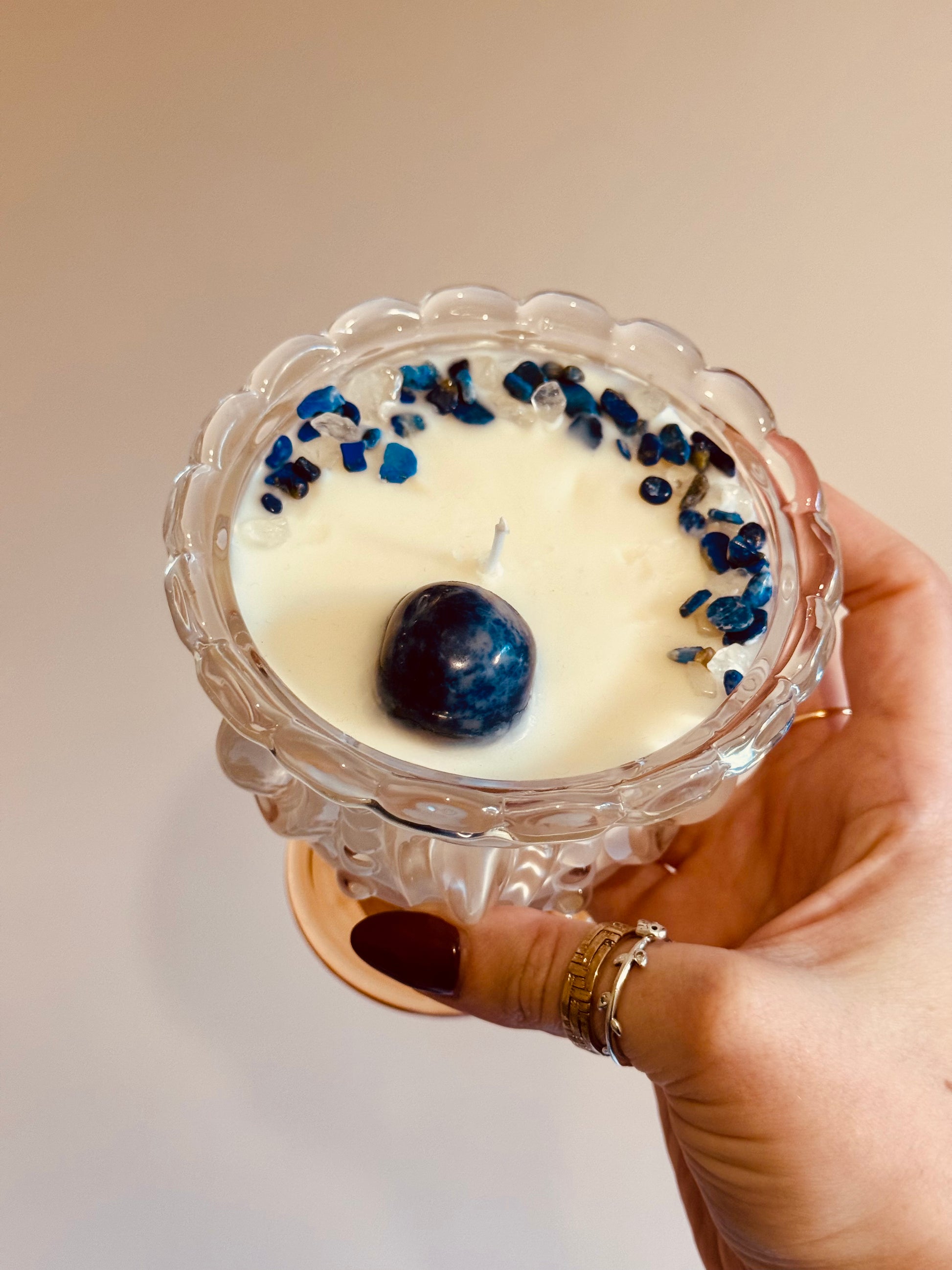 Bougie verre Cannelle/épices - Sodalite/Lapis-lazuli