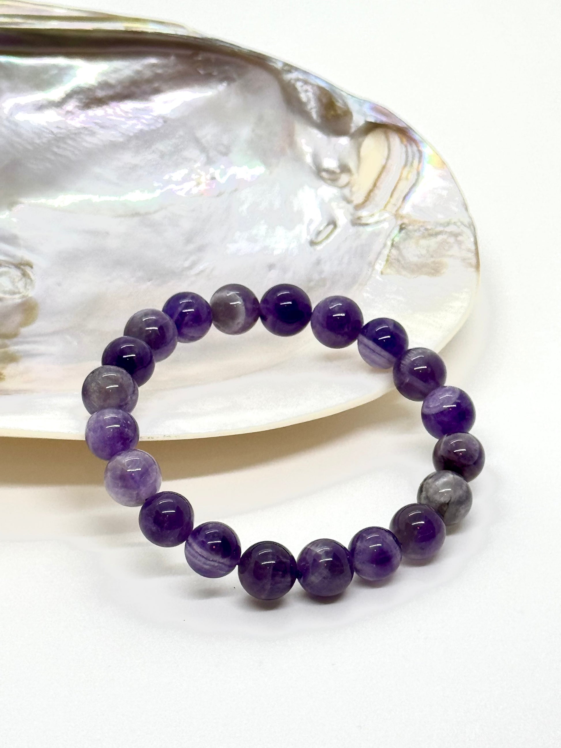 Bracelet extensible en perles naturelles d'Améthyste rubanée ✨