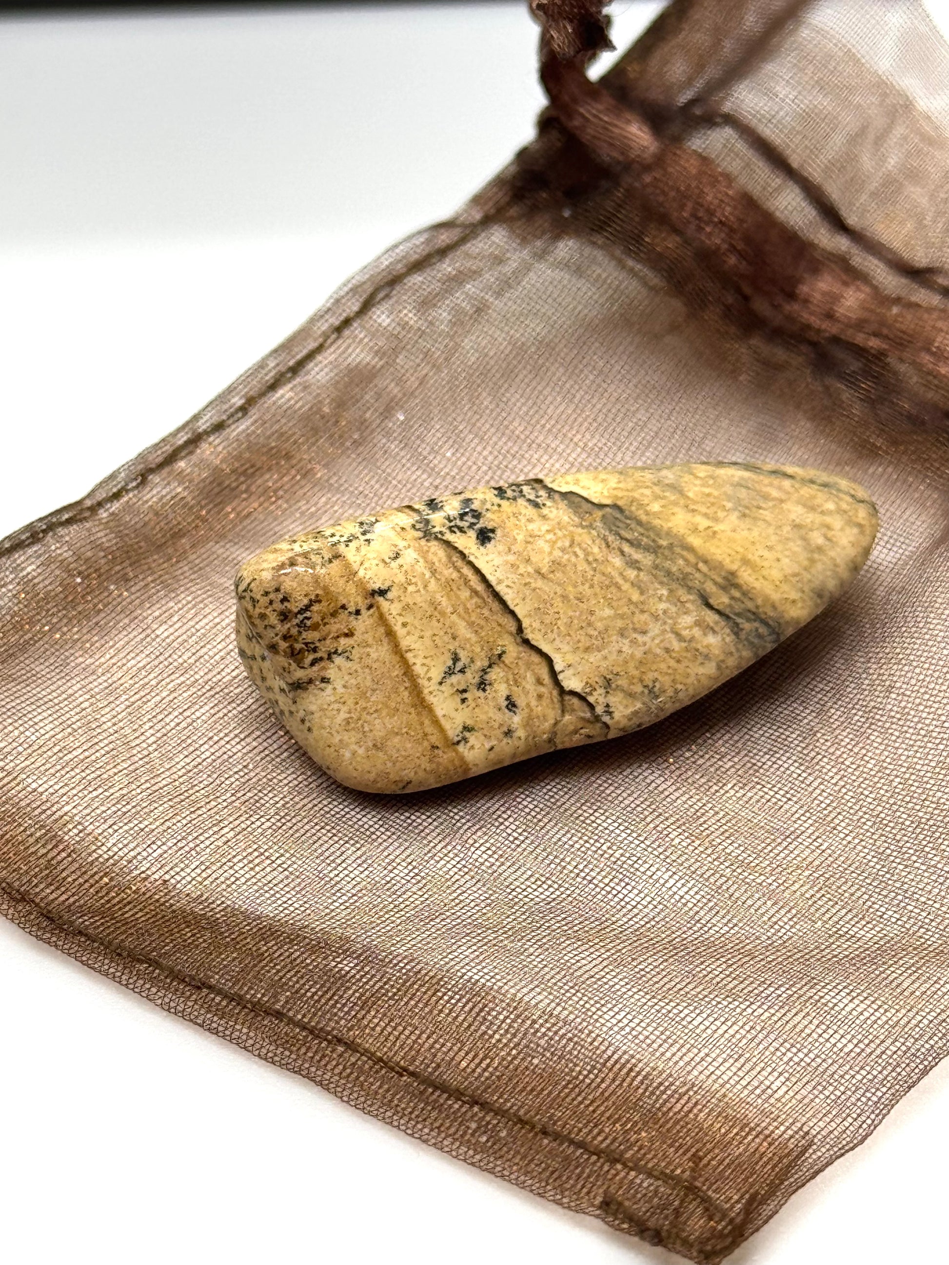 🔮 Le Jaspe Paysage est depuis la Préhistoire une pierre reliée à la Terre par les peuples en raison de ses stries allant du beige sable au brun.