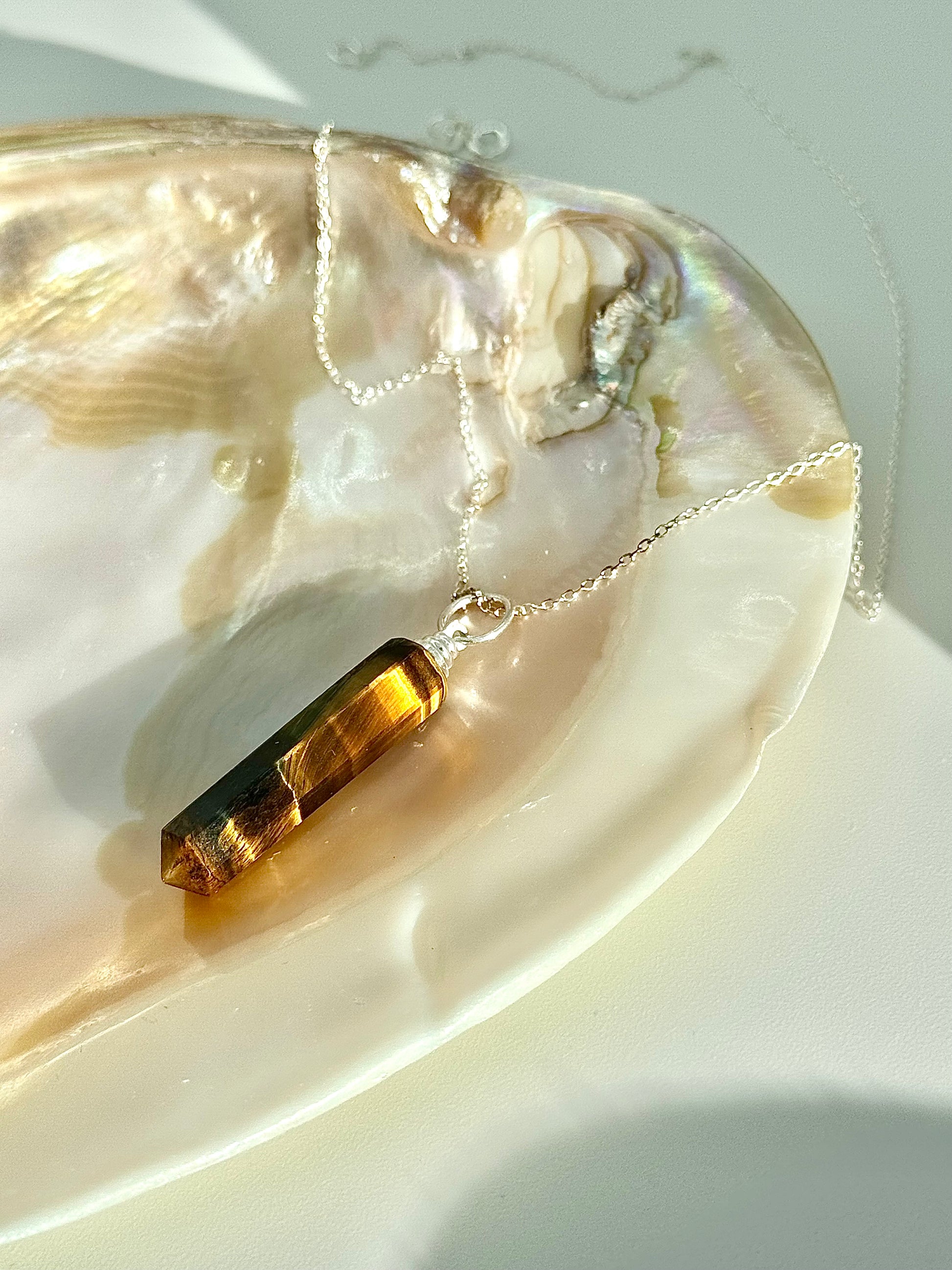 Collier pendentif pointe Oeil de Tigre - Chaine Argent 0.925