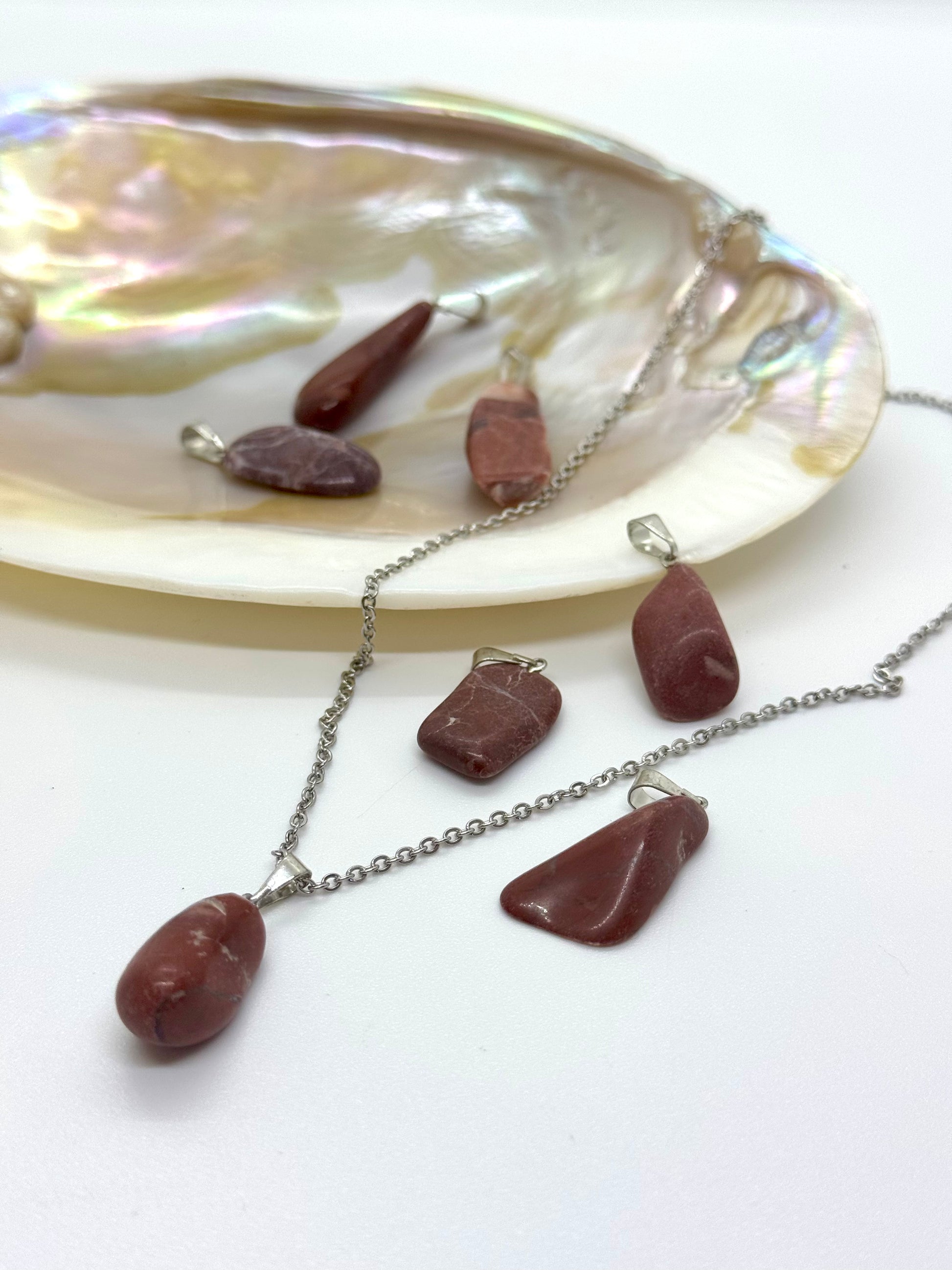 Pendentif en pierre roulée naturelle de Jaspe rouge ✨