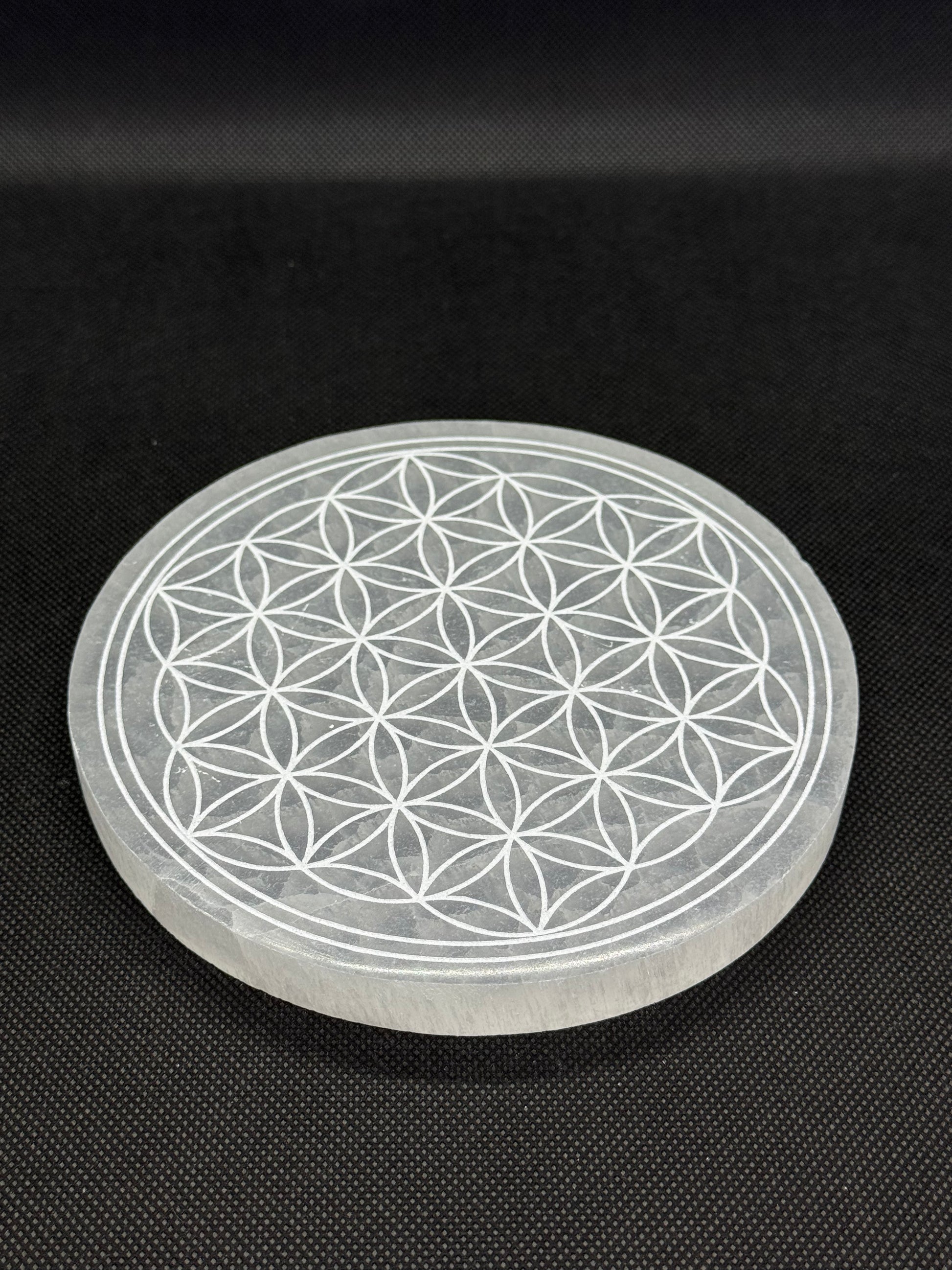Plaque Fleur de vie en pierre naturelle de Sélénite ✨