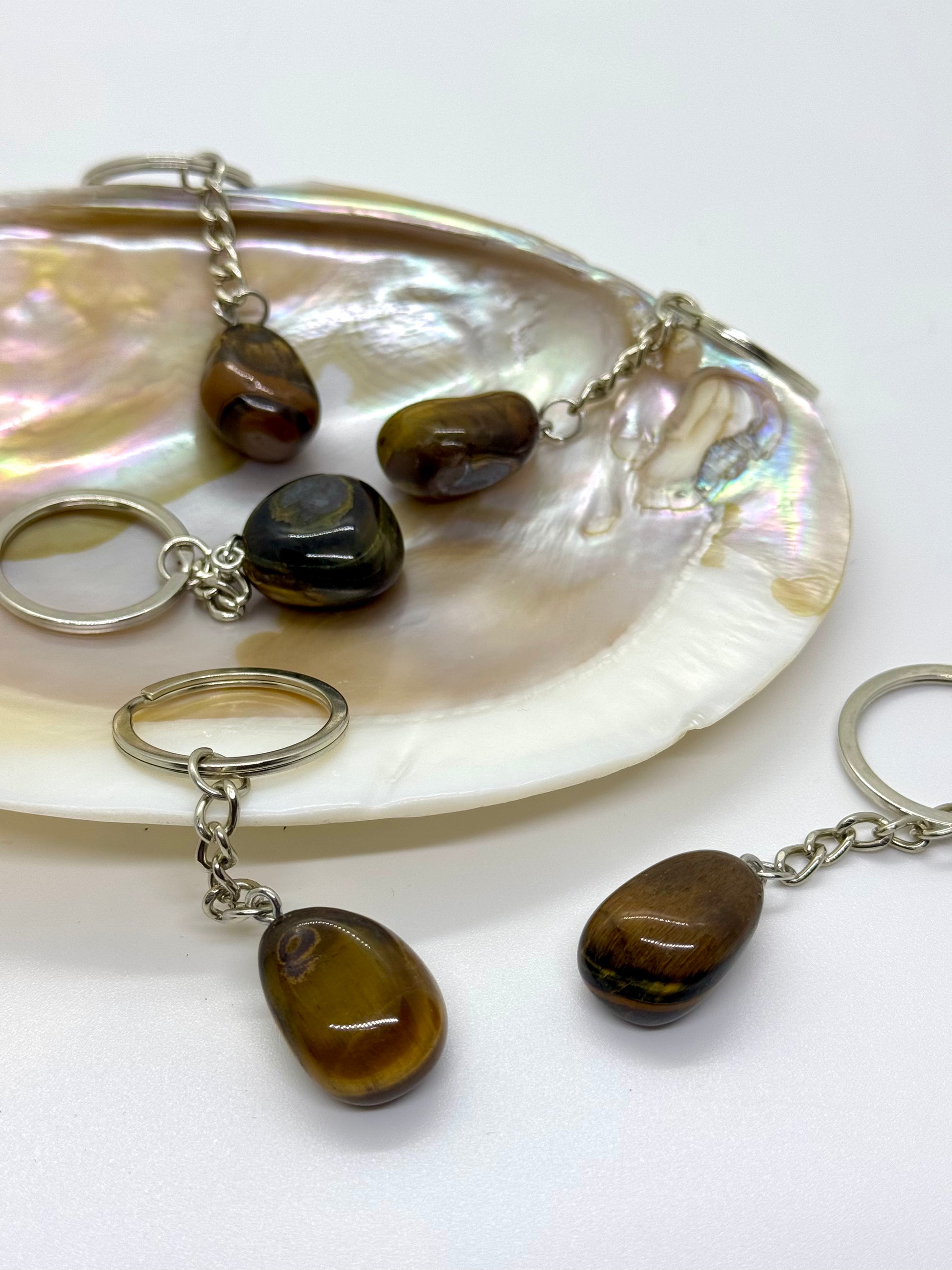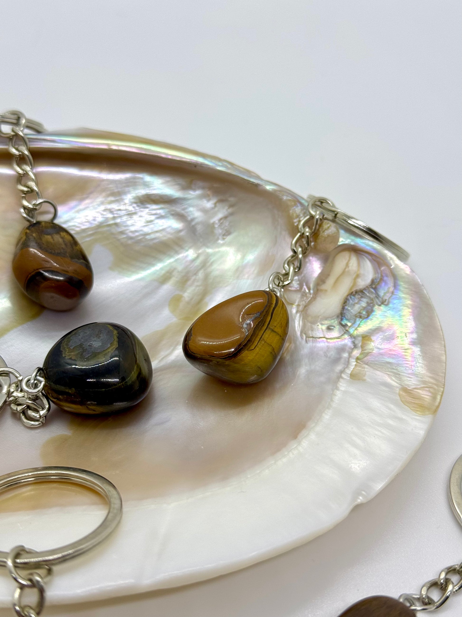 Porte-clés en pierre roulées naturelle d'Oeil de Tigre 🐯